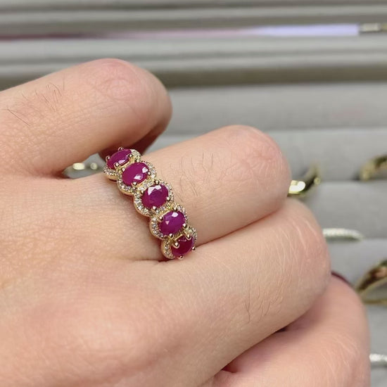 Anillo de Rubíes y Diamantes naturales en oro amarillo 14K