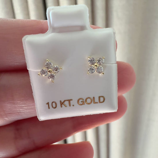 Broquel en forma de flor en oro amarillo de 10K con zirconias.